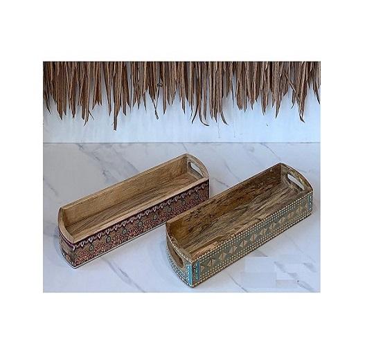 Plateau de service en bois massif pour collations et bonbons Plateau de service exclusif pour aliments de qualité avec poignées en métal pour mariage
