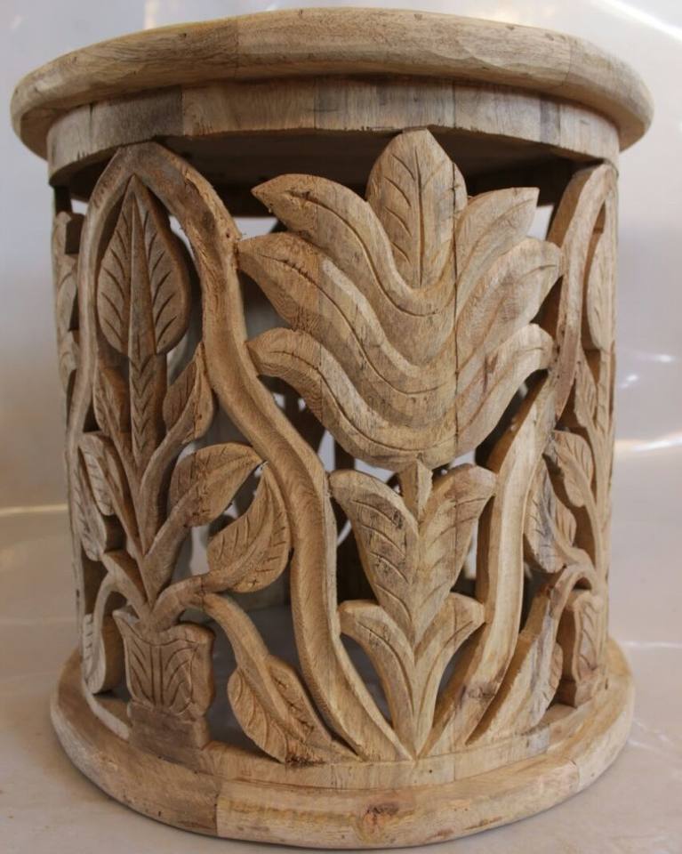 Tabourets de table en bois brun massif rond sculpté stockage café et thé pliable caractéristique décorative pour chambre et hôtel