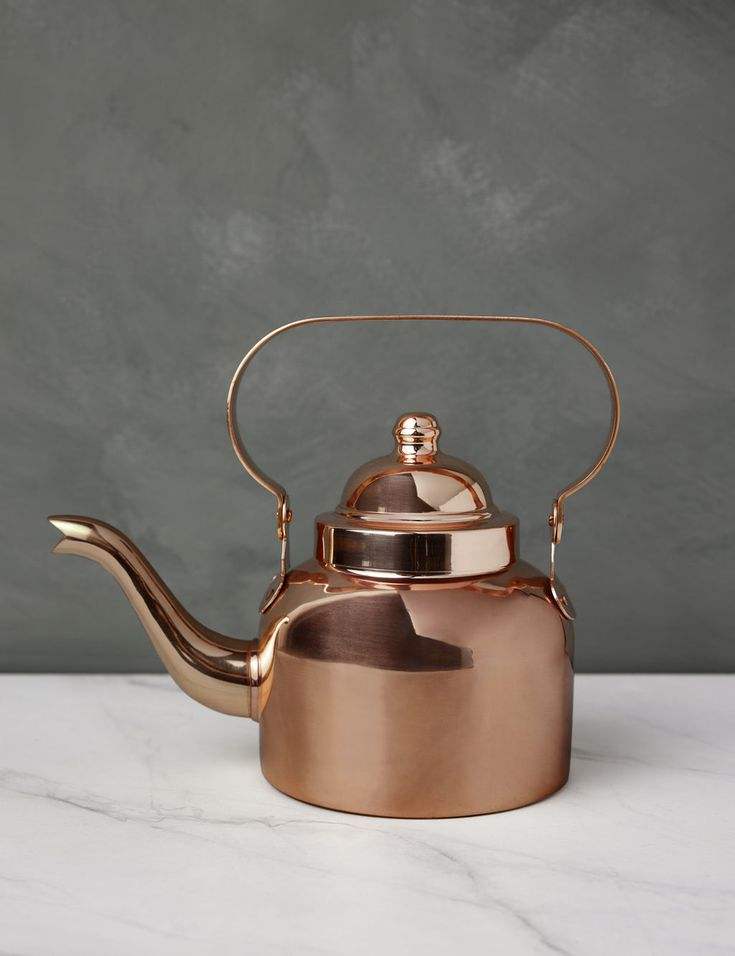 Bouilloire en cuivre martelé massif avec construction durable et finition naturelle conçue pour la préparation quotidienne du thé et la décoration intérieure