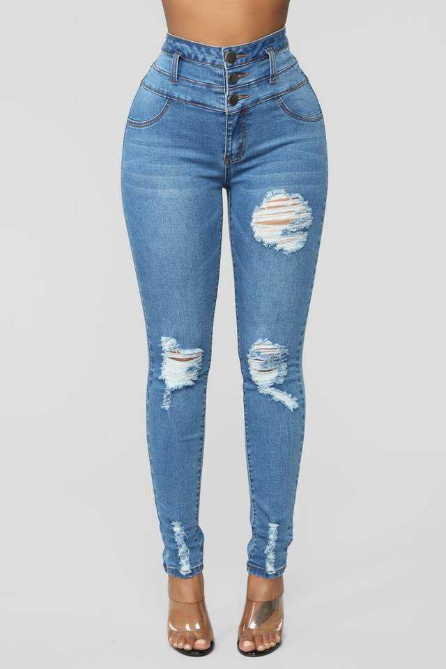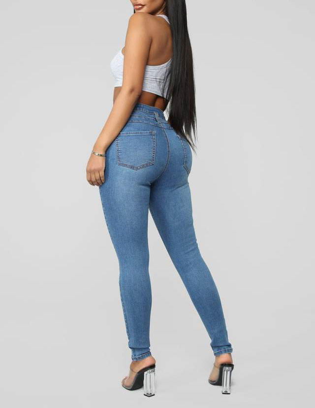 Solid plain color skinny fit High Waist Elastic Blue Black Denim Ladies Pencil Pants Women Pencil Jeans Slim Skinny Denim Jeans
