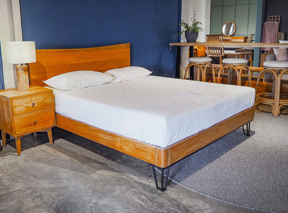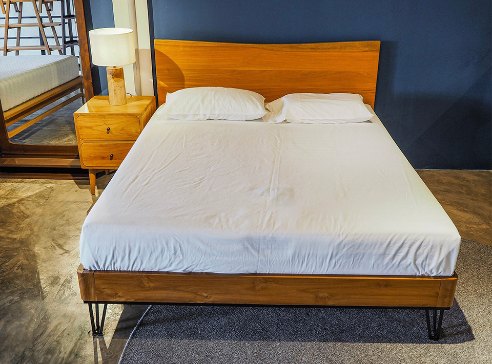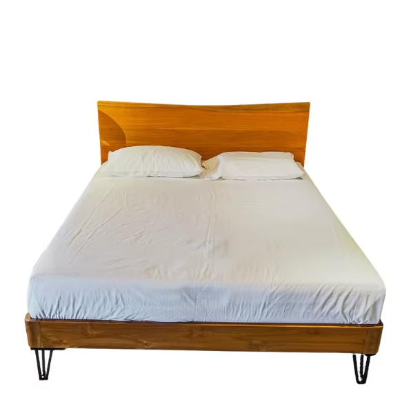Cadre de lit plateforme en teck massif lit contemporain en bois à profil bas pour mobilier de chambre à coucher élégant hôtel villa de villégiature industrielle