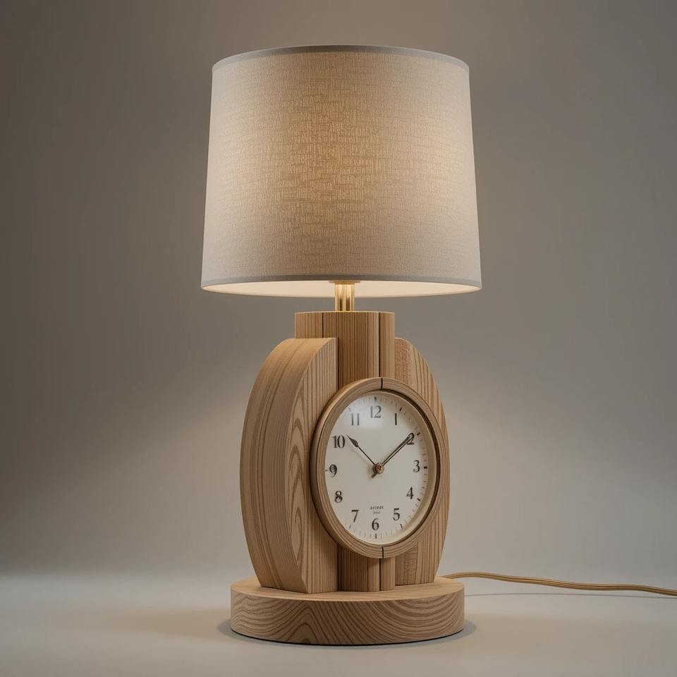 Solid wood table lamp clock lamp Handmade wood night lamp clock wooden desk decoration