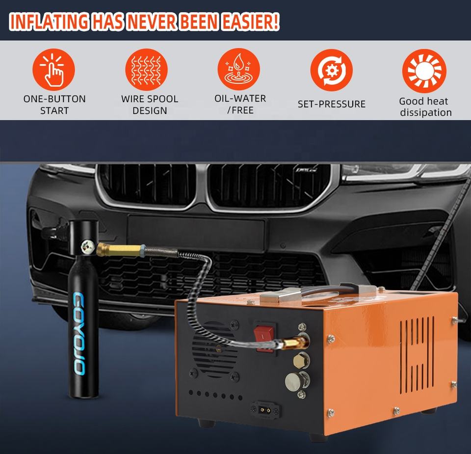 Compresseur d'air portable SolidTop 4500psi 30MPa 300bar PCP haute pression sans huile refroidi par air 12V 110V 220V pour paintball, plongée sous-marine, voiture