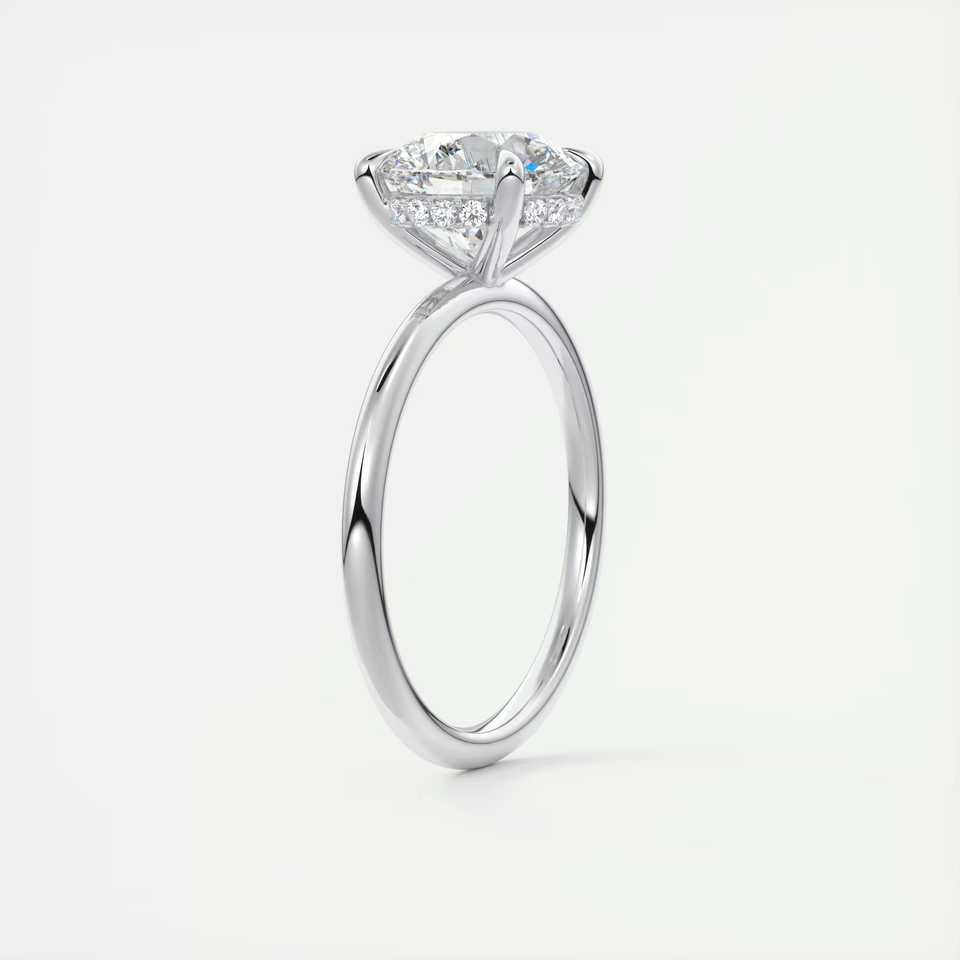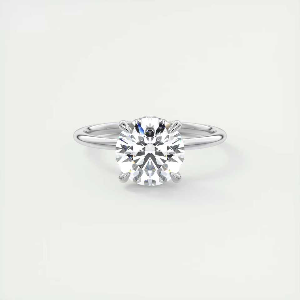Bague de fiançailles solitaire avec diamant rond de 2,50 carats cultivé en laboratoire et halo caché serti à la française en or blanc 14 carats