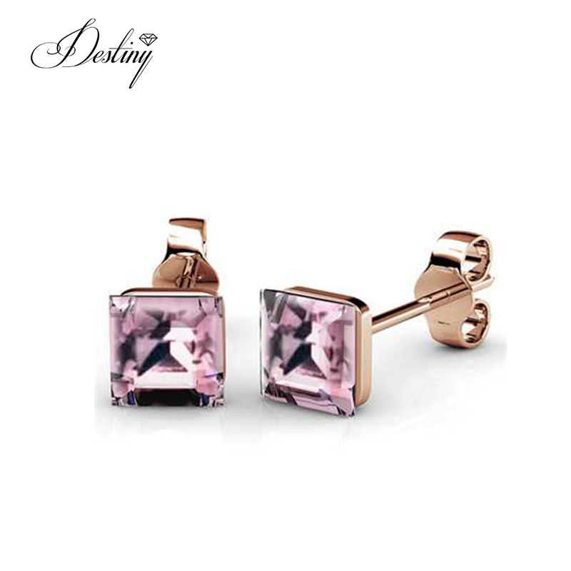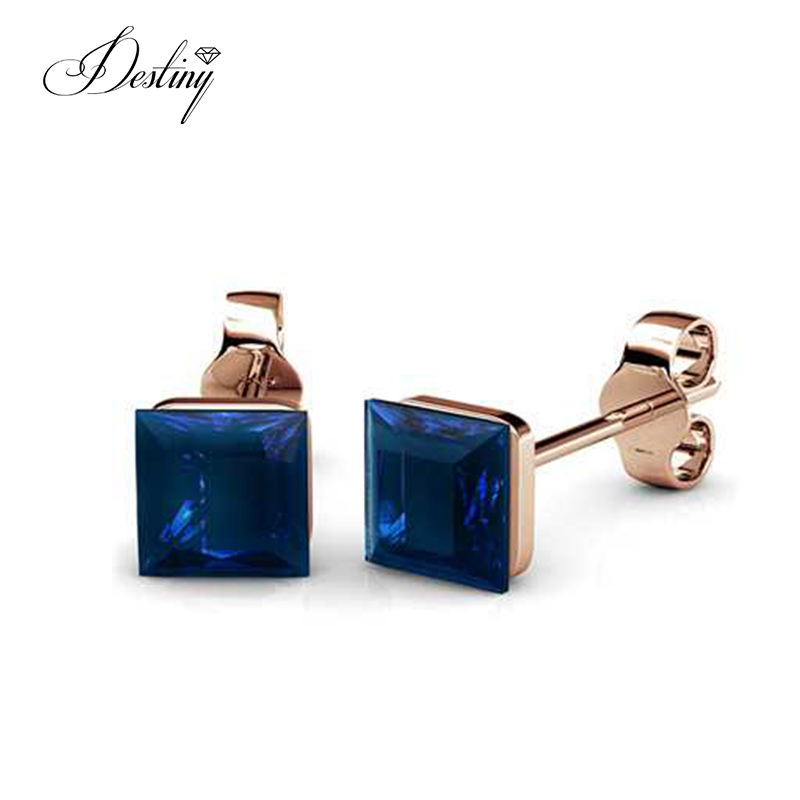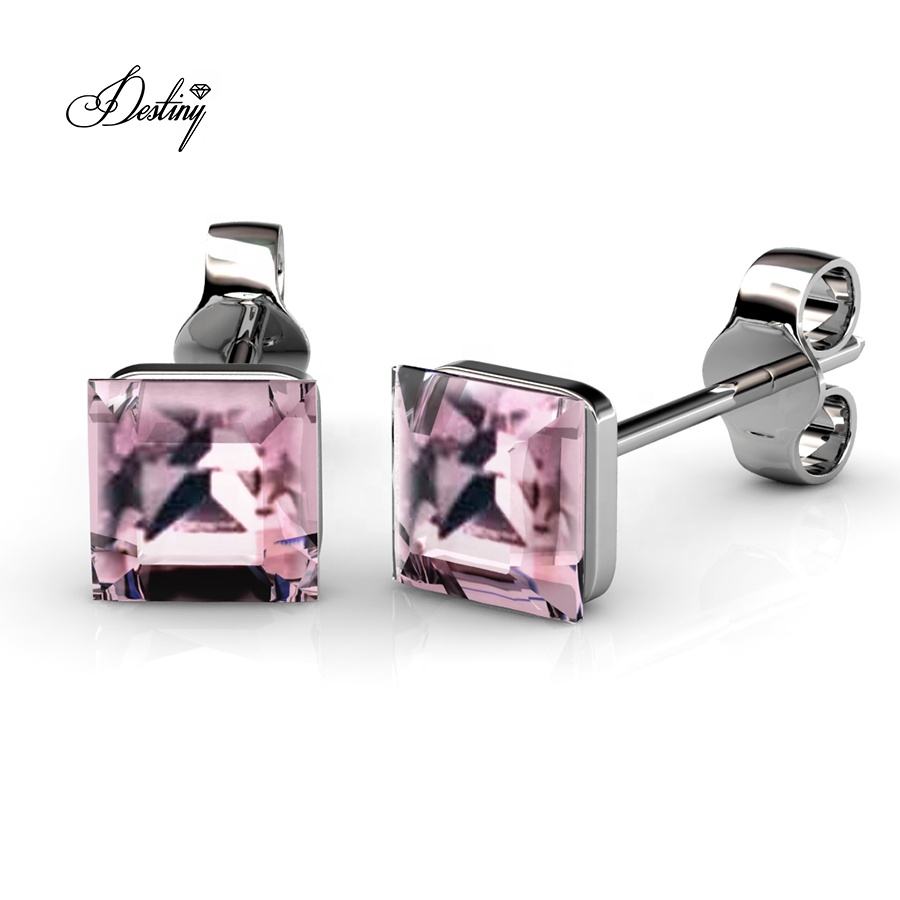 Solitaire géométrique carré bleu royal ou rose cristal boucles d'oreilles ornées de cristaux Swarovski Daisini bijoux de mode