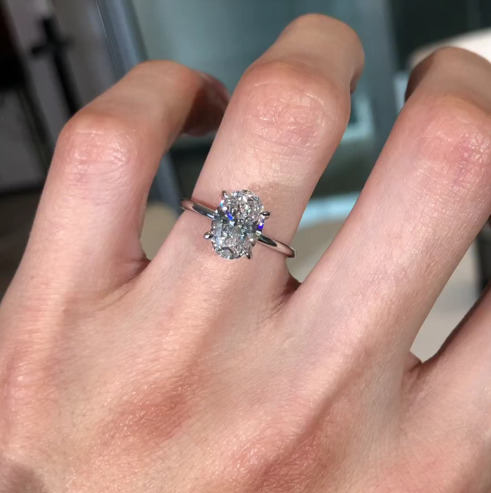 Solitaire Lab Grown 2.00 Ct Bague de fiançailles coupe ovale VS1 Bridle 14K Bague de mariage en or blanc CVD Lab Créé Bridle Ring
