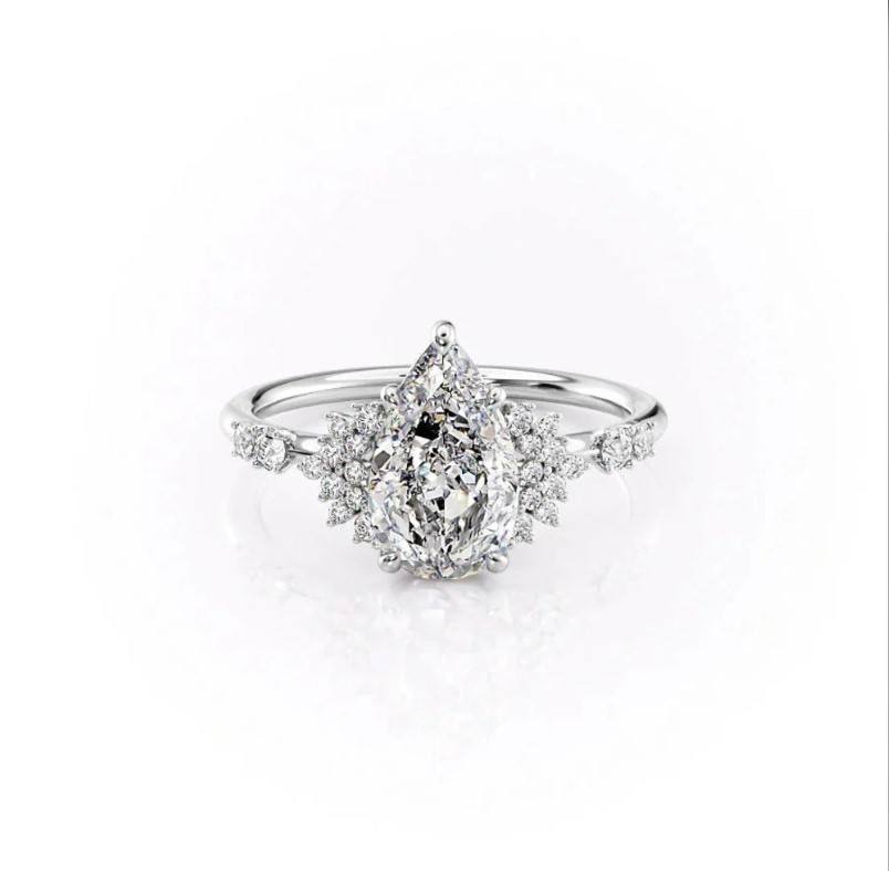 Bague de fiançailles en diamant solitaire Lab Grown poire en or blanc 14K