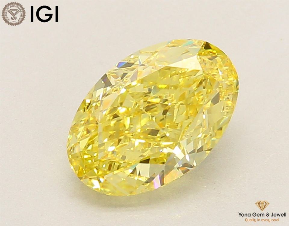 Diamant de laboratoire cultivé CVD de 2,50 carats, taille ovale, couleur jaune vif fantaisie, clarté VVS2, certifié IGI pour les bijoux
