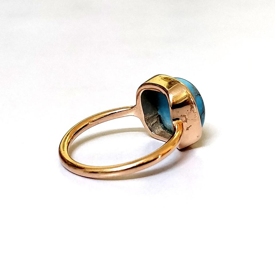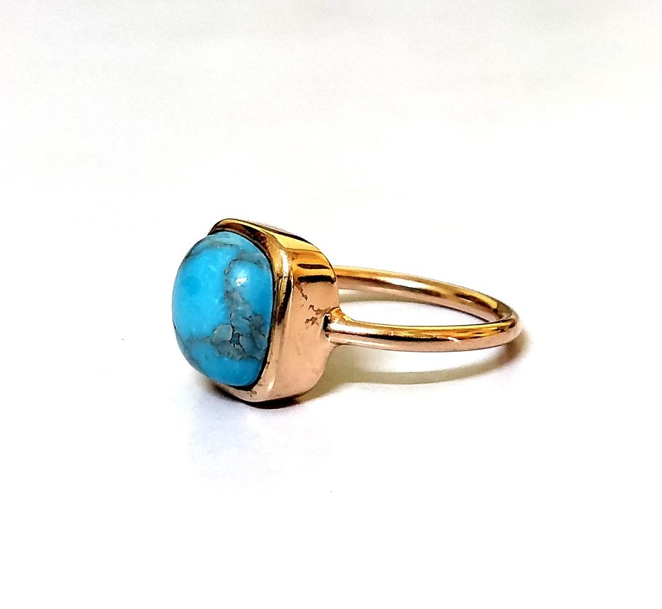 Solitaire – bague en pierre turquoise, bagues en or rose, bagues de déclaration, coussin, pierres précieuses, bijoux, vente en gros, Offre Spéciale