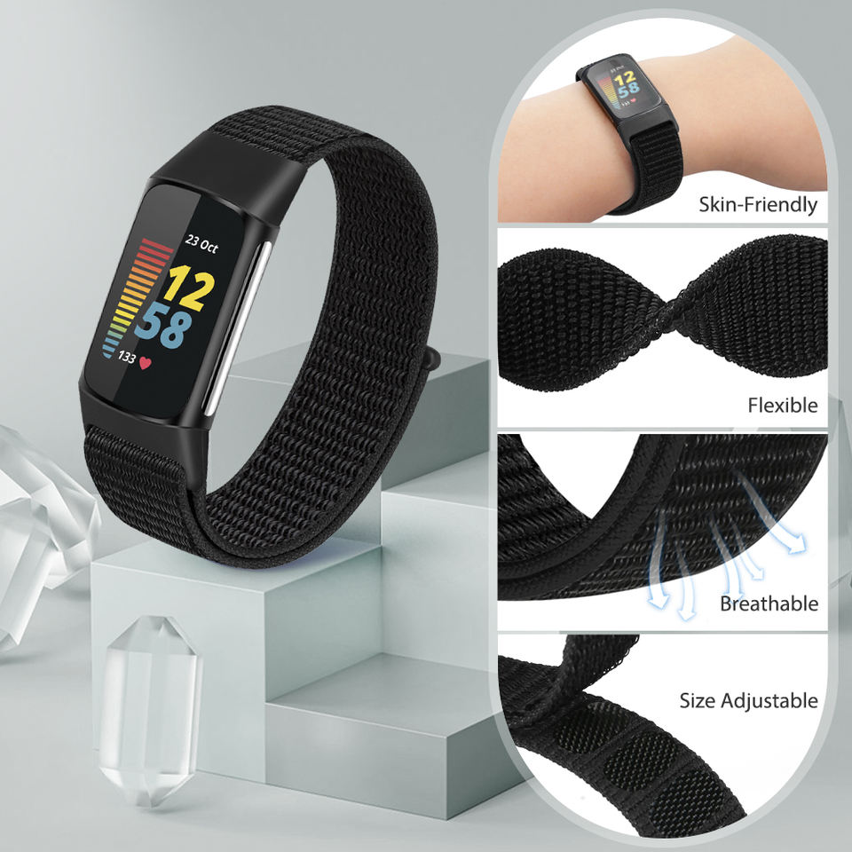 Bracelet de remplacement réglable Solo Loop en nylon pour Fitbit Charge 6/Fitbit Charge 5 bandes sangles