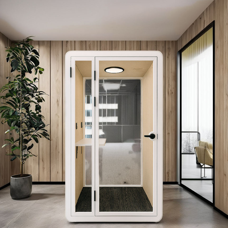 Cabines de bureau insonorisées Solo Plus HIPOD avec structure en aluminium, éclairage LED, design minimaliste à pieds métalliques pour bureau à domicile