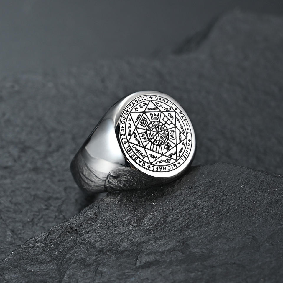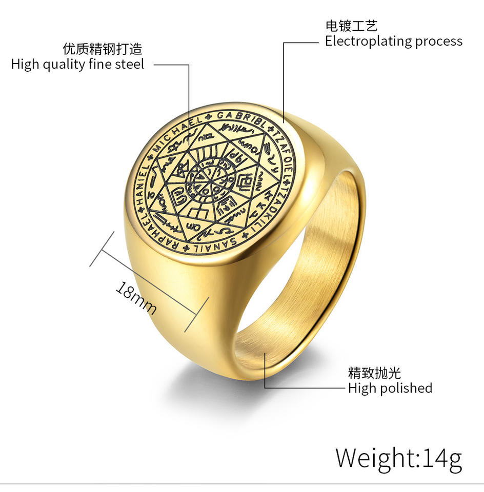 Bague de Salomon Clé Étoile Acier Inoxydable Or et Argent Amulette Bijoux pour Hommes Sept Sceaux Bague Archange