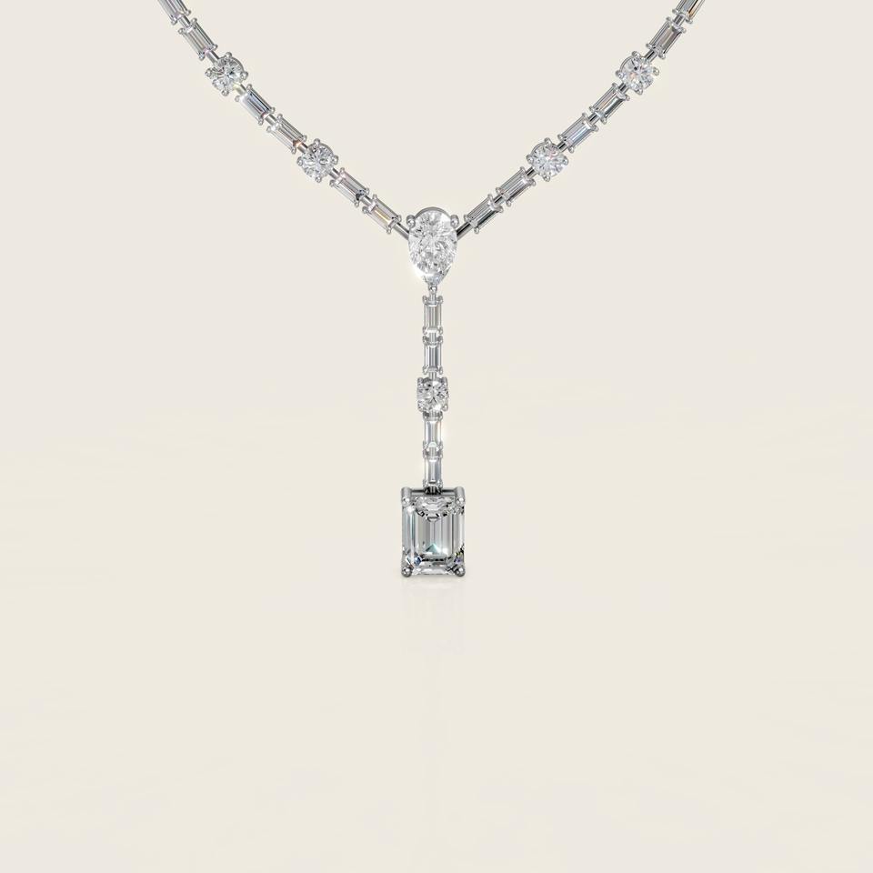 Collier en diamant de forme mixte Radiant Y-Drop, bijoux de déclaration de luxe pour femmes