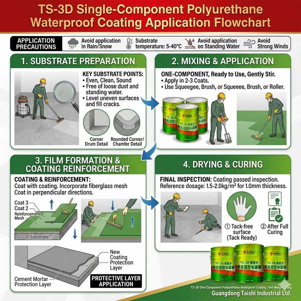 Revêtement imperméable en PU à base d'eau TS-3D sans solvant, application facile et respectueux de l'environnement