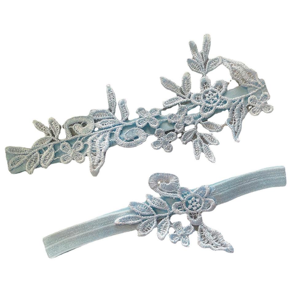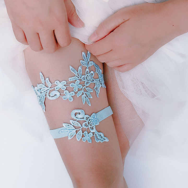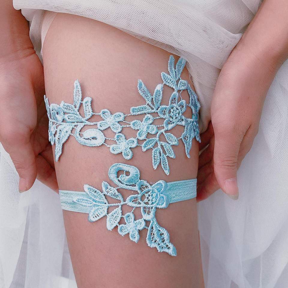 Quelque chose de bleu broderie florale dentelle jambe anneau mariage jarretière ensemble ceinture élégant Floral cuisse jarretière pour les mariées