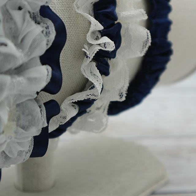 Nom du produit:Quelque chose de bleu foncé à volants dentelle ruban de satin jarretières