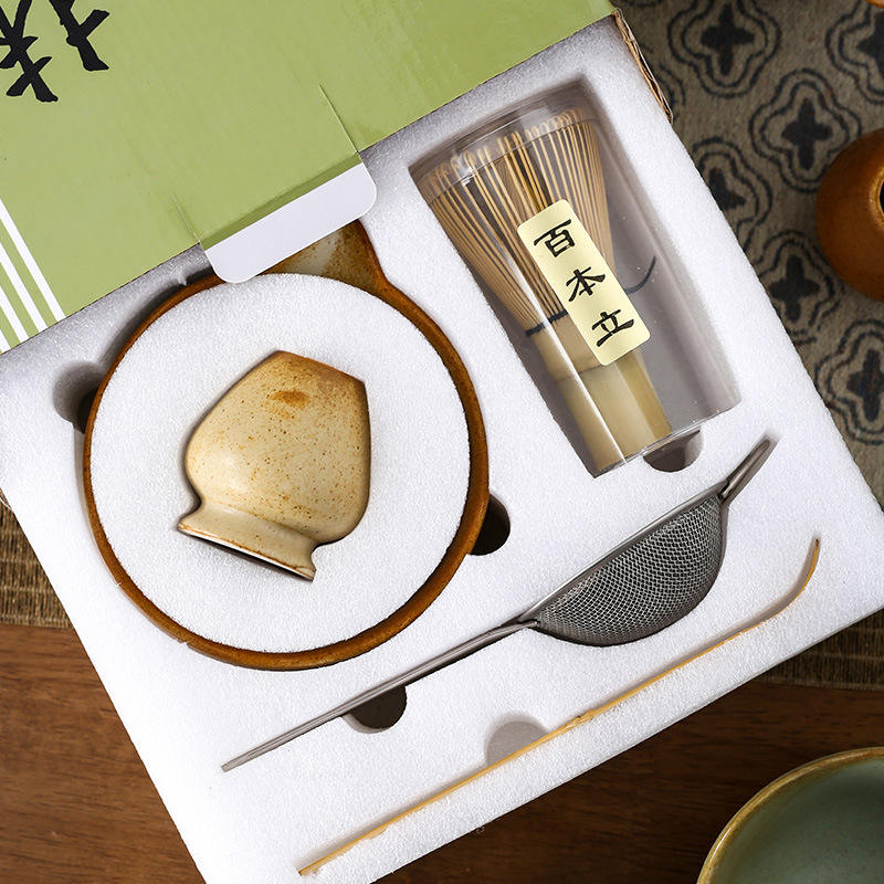 Ensemble d'outils pour le thé fouetté (Diancha) de la dynastie Song : bol à matcha, support pour chasen, chashaku, brosse à mélanger le thé et chasen en bambou