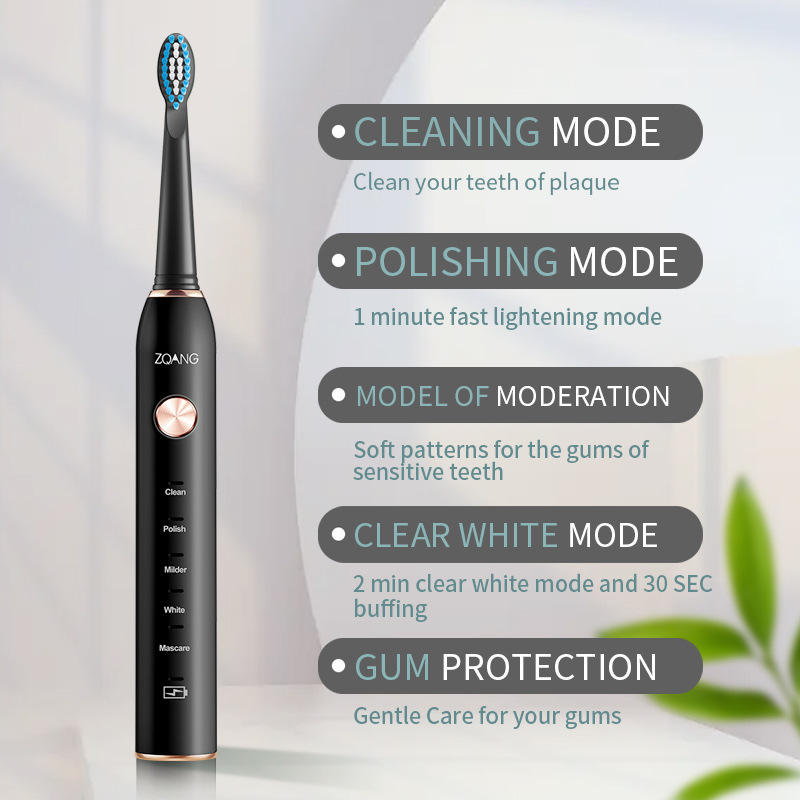 Brosse à dents électrique connectée intelligente Sonic 5 modes de nettoyage Chargement USB Affichage LED Code à barres souple inclus