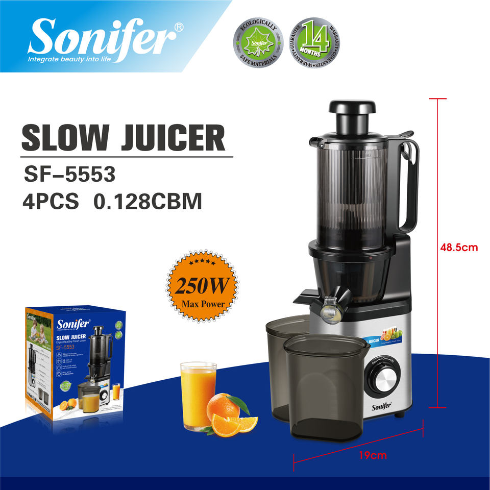 Sonifer Extracteur de jus lent SF-5553 250W 100mm Chute d'alimentation 1000mL Contrôle à double bouton de commande à faible bruit 60dB pour restaurant