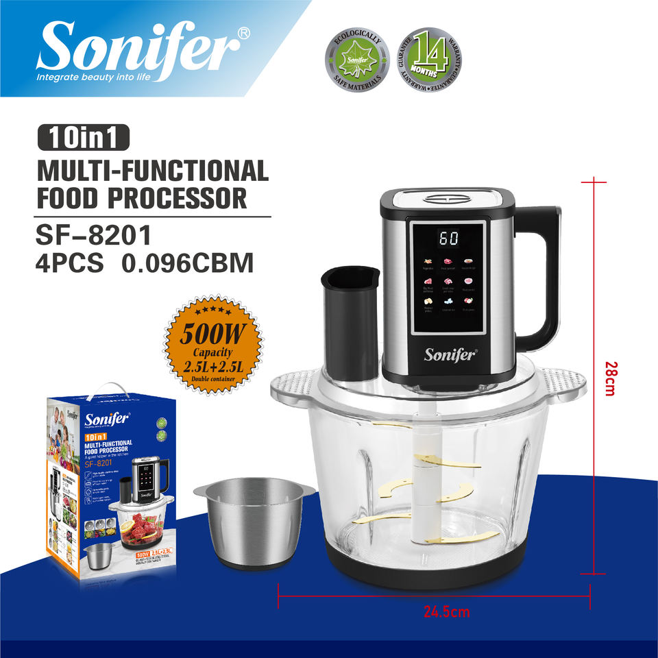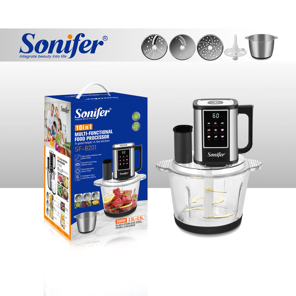 Robot culinaire Sonifer SF-8201 10 en 1, machine de cuisine multifonctionnelle, hachoir, trancheuse pour la cuisine à domicile, préparation des repas, cadeau
