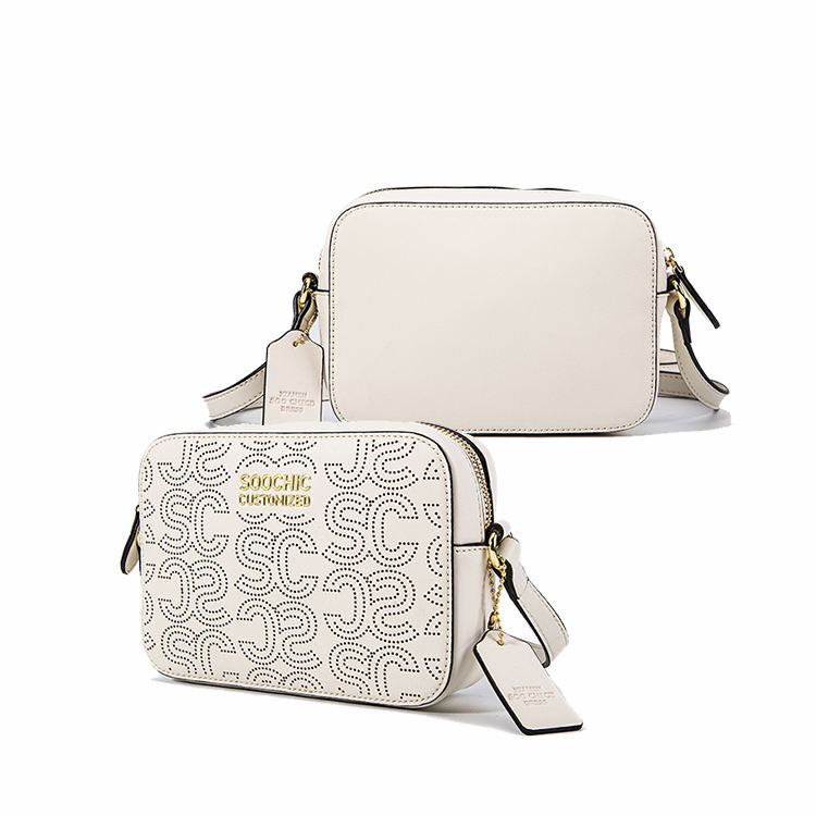 Robe soochic monogramme personnalisé Signature Perforé faux cuir zippé Mini sac appareil photo Sac bandoulière bandoulière