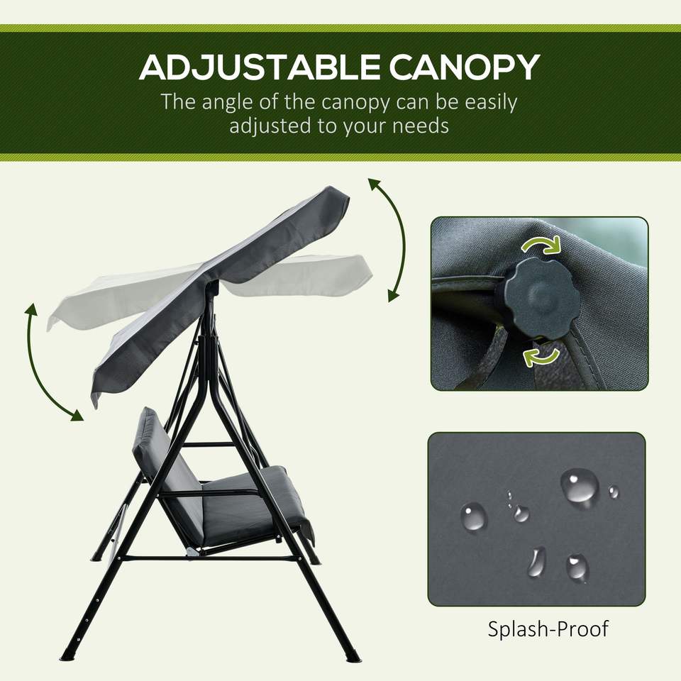 Balançoire extérieure 3 places grise apaisante avec auvent réglable rembourré Patio Bliss pour un divertissement extérieur confortable