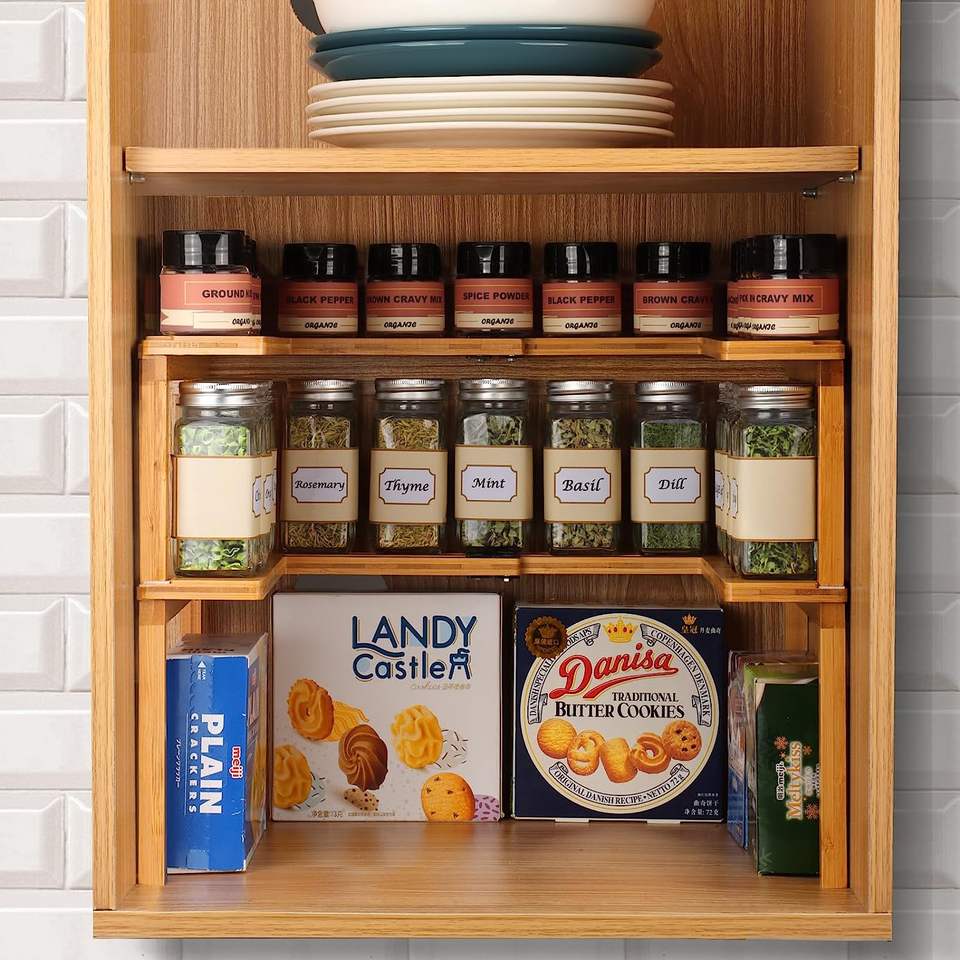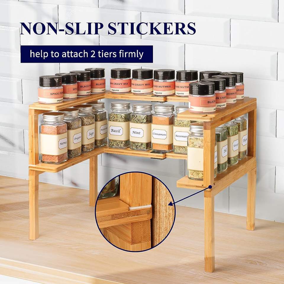 Sopewod étagère de rangement extensible et empilable étagère à épices en bambou support d'angle organisateur porte-bouteille d'épices pour la cuisine