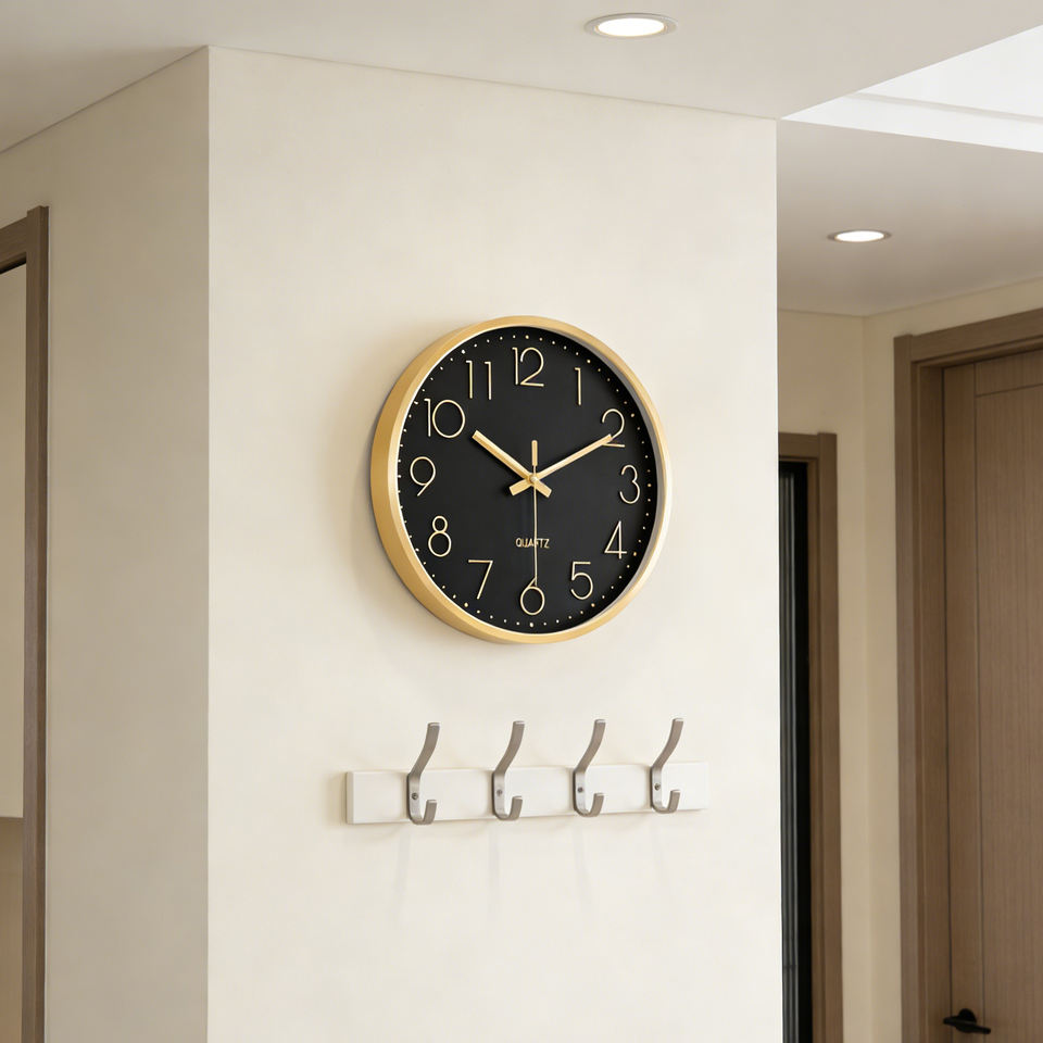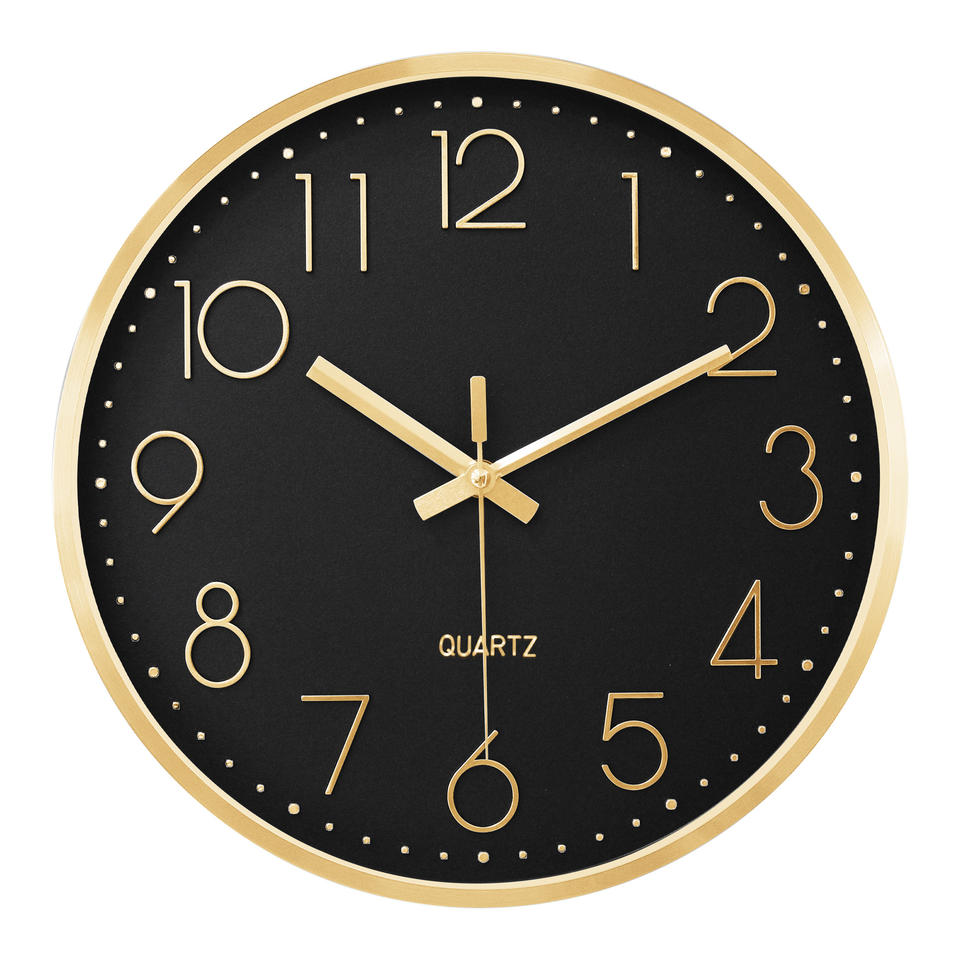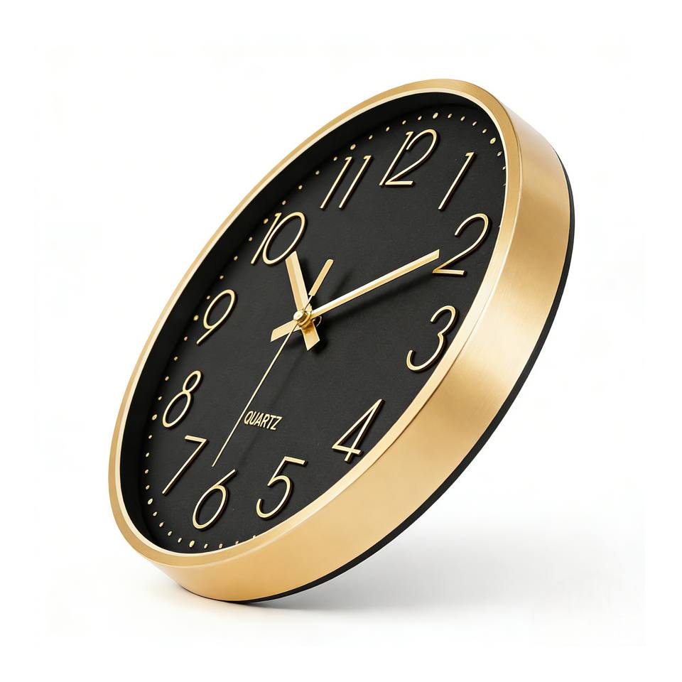 Horloge murale de luxe en métal avec cadran noir sophistiqué de 12 pouces, chiffres 3D, mouvement à quartz, pour restaurant haut de gamme, café, style vintage