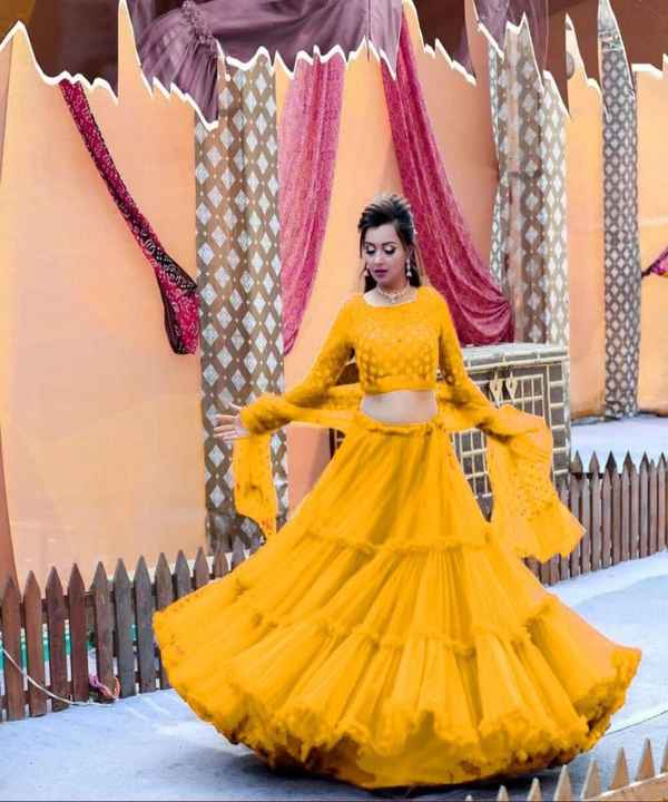 Ensemble Lehenga Choli sophistiqué avec broderie complexe et détails à volants Opulent Festive Wear Lehenga Choli