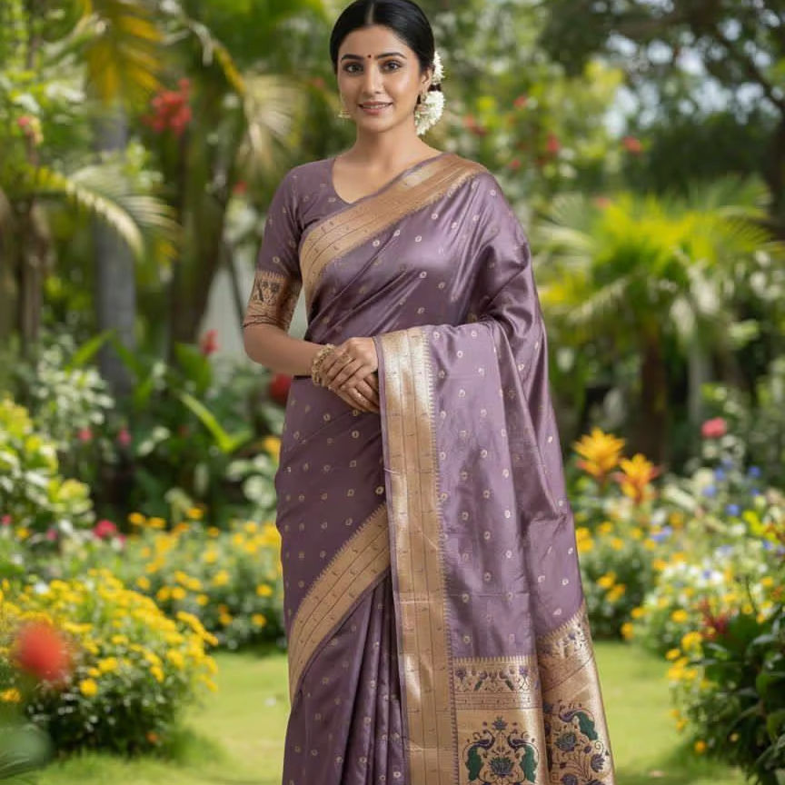 Sartin Silk With All Over Zari Butti With Jacquard Belt