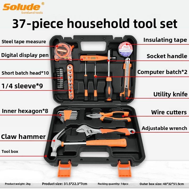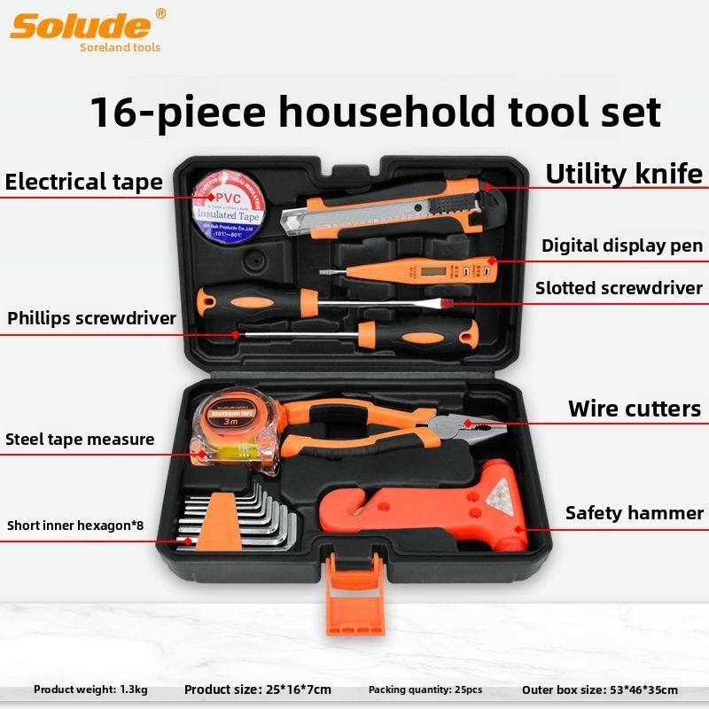 Ensemble d'outils ménagers Sorend, boîte à outils de réparation pour électricien, multifonction, combinaison STT-046, emballage en cuir, clé hexagonale CRV