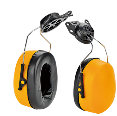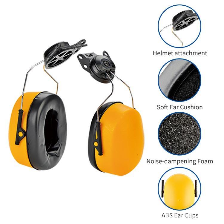Oreillettes d'isolation acoustique et de réduction du bruit avec casques de sécurité suspendus sur les chantiers de construction