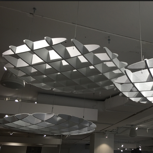Panneaux insonorisants Suspension et esthétique rythmique Baffle de plafond d'art acoustique ignifuge Panneau de plafond acoustique en PET