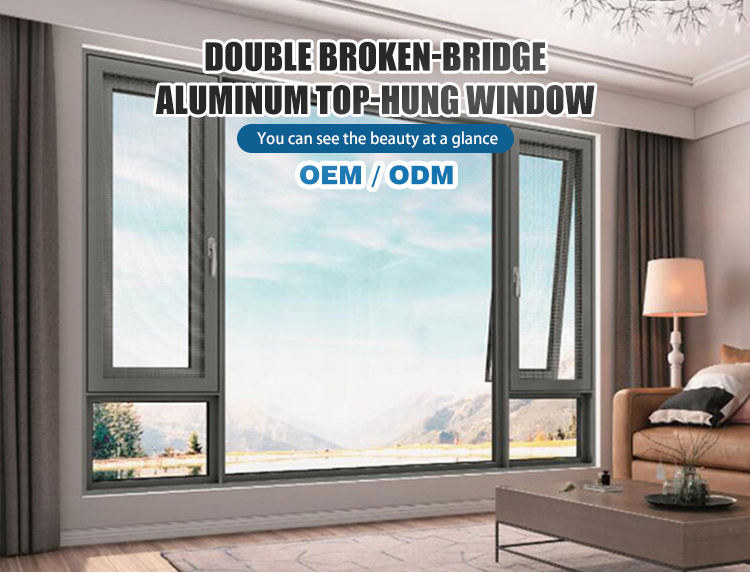 Fenêtres en aluminium à double vitrage insonorisées et à rupture de pont thermique avec enrouleur de chaîne pour stores de fenêtre