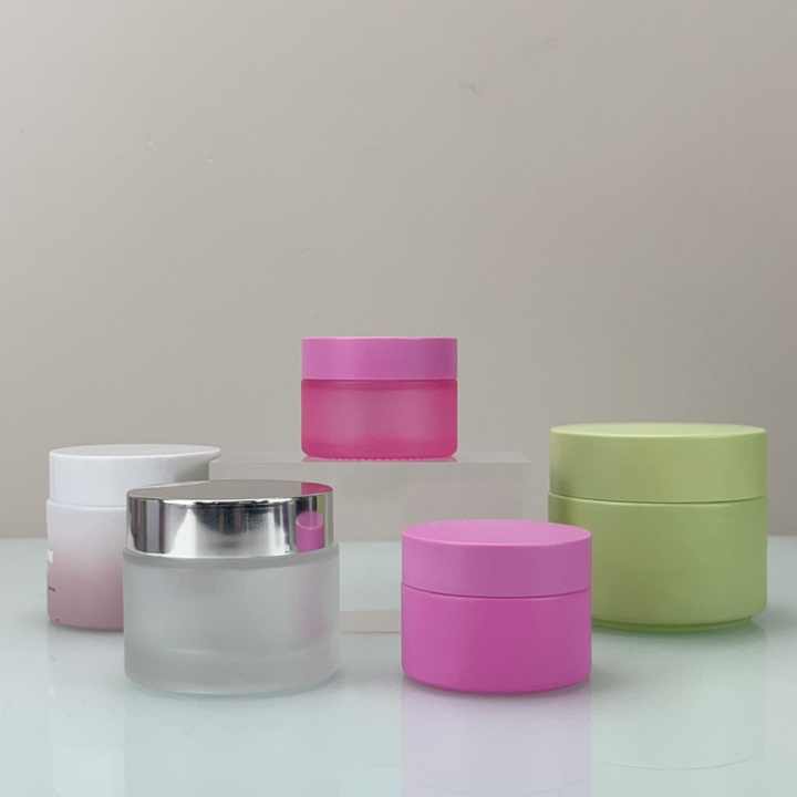 Fabrication directe : Pots cosmétiques ronds en verre mat pour crème contour des yeux, 30g, 50g, 100g, avec impression sérigraphique et boîte en papier carrée personnalisée