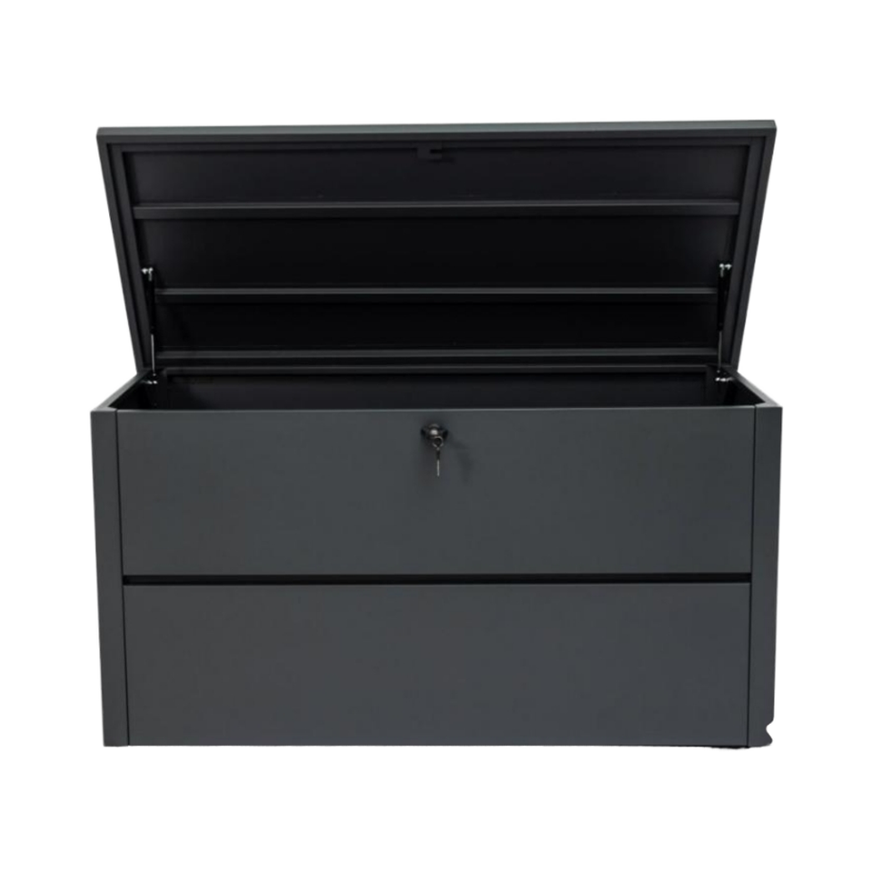 Fabricant de source Coffre de jardin Boîte de rangement Boîte de rangement Coffre Étanche Métal Acier inoxydable Anthracite