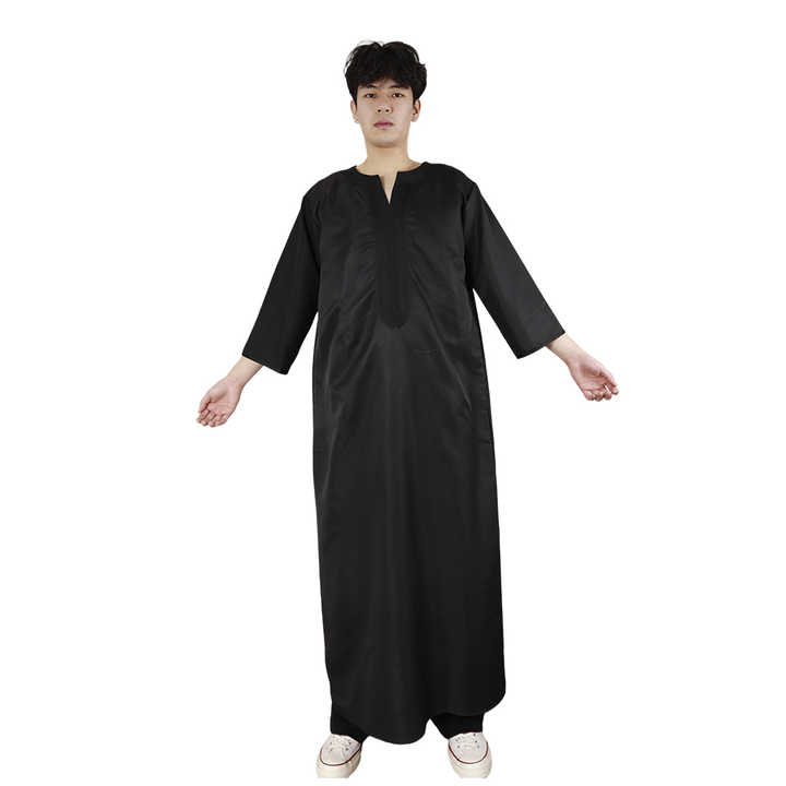 Nom du produit:Robe longue noire Thobe islamique traditionnelle pour homme, longueur cheville