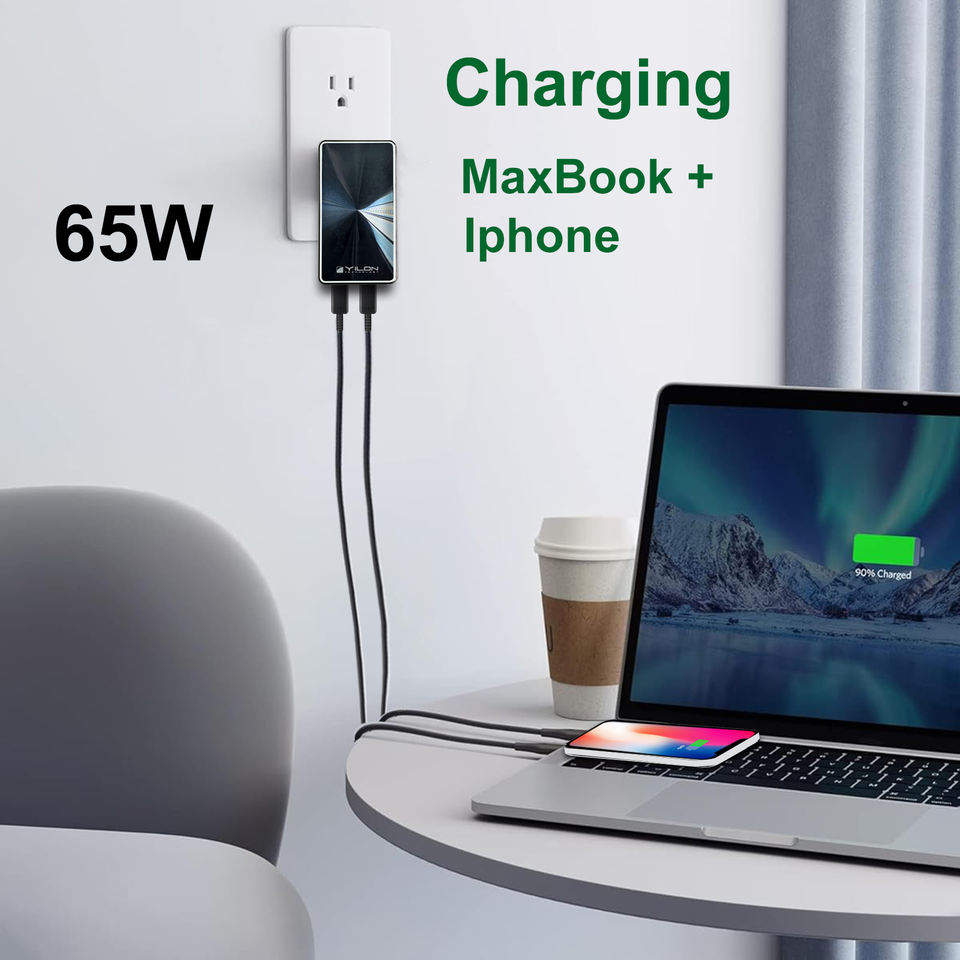 Source Fabricant Yilon Company Produit un traitement de surface de motif de logo personnalisé haut de gamme Adaptateur de charge de voyage 65W pour ordinateur portable
