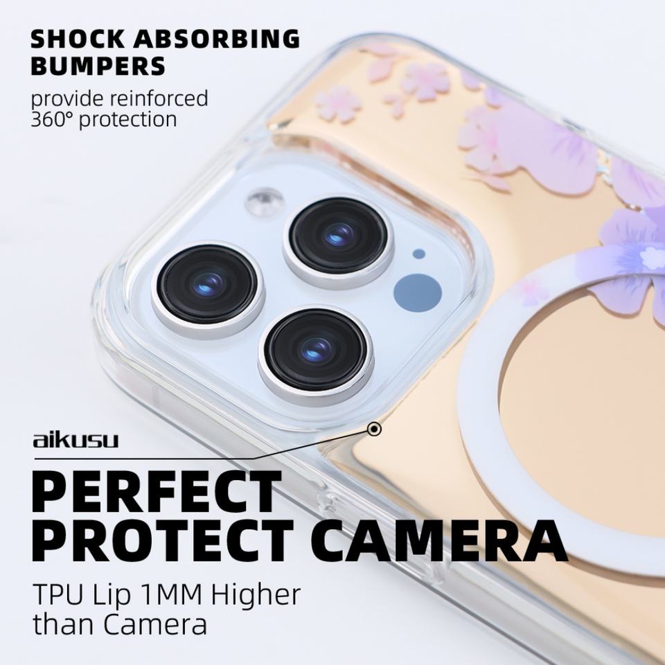 Coque magnétique électroplaquée effet miroir pour iPhone 14/15 Pro, 1,5 m, antichoc, impression UV, protection intégrale