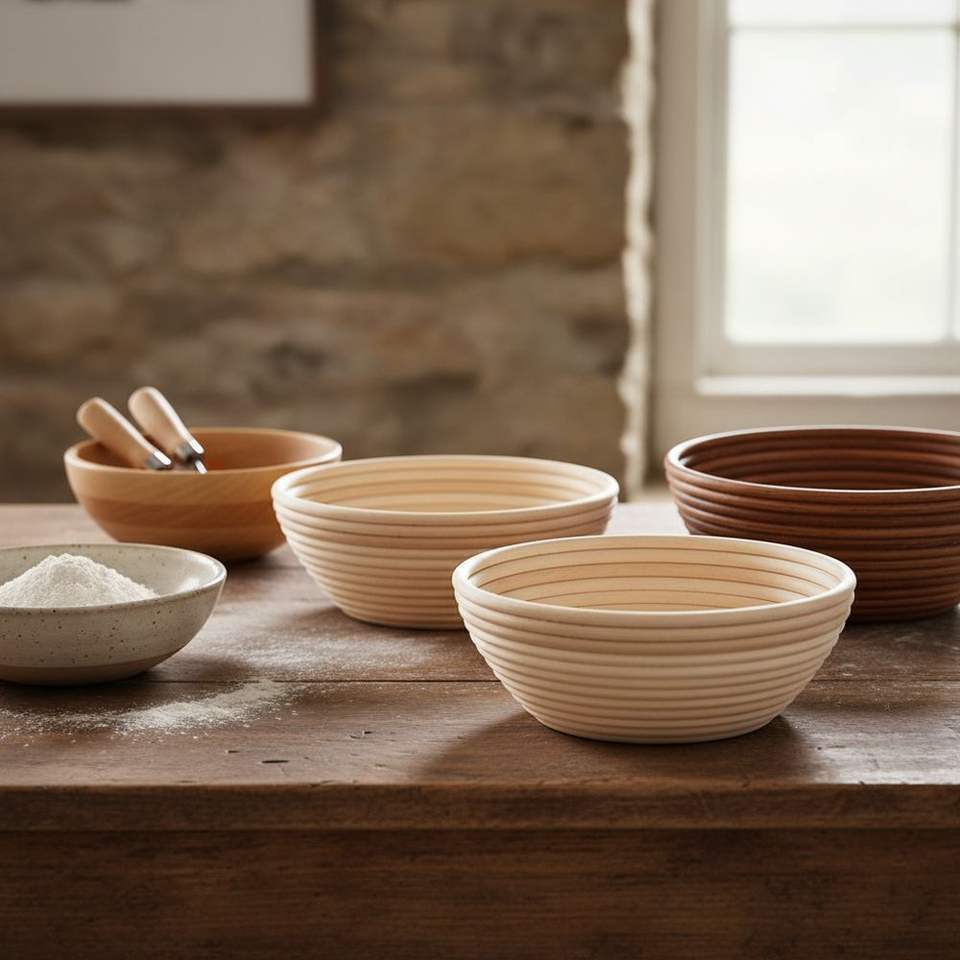 Panier de levage pour pâte à sourde en rotin naturel, banneton rond avec doublure en lin, outil de fermentation du pain fait main