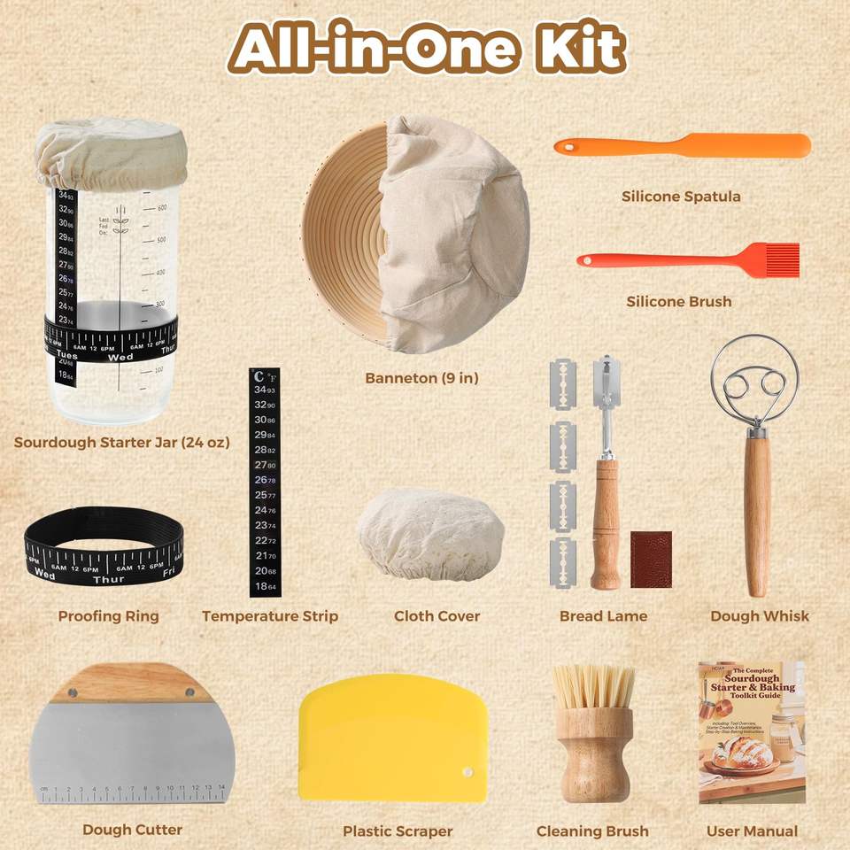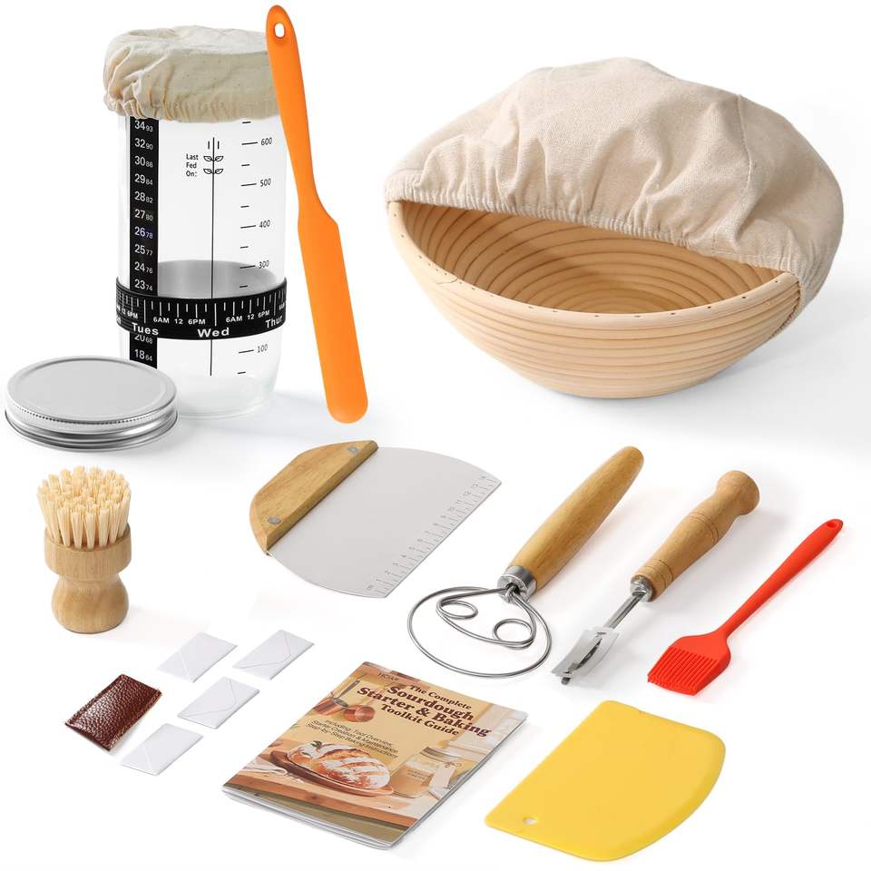 Kit de démarrage pour levain, ensemble de paniers de levage ronds de 9 pouces, fournitures de boulangerie pour levain, outils pour la fabrication de pain au levain