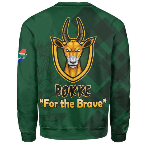 Sweat-shirt de rugby des Springboks d'Afrique du Sud, imprimé drapeau et emblème de l'équipe nationale « Bokke for the Brave », col rond vert