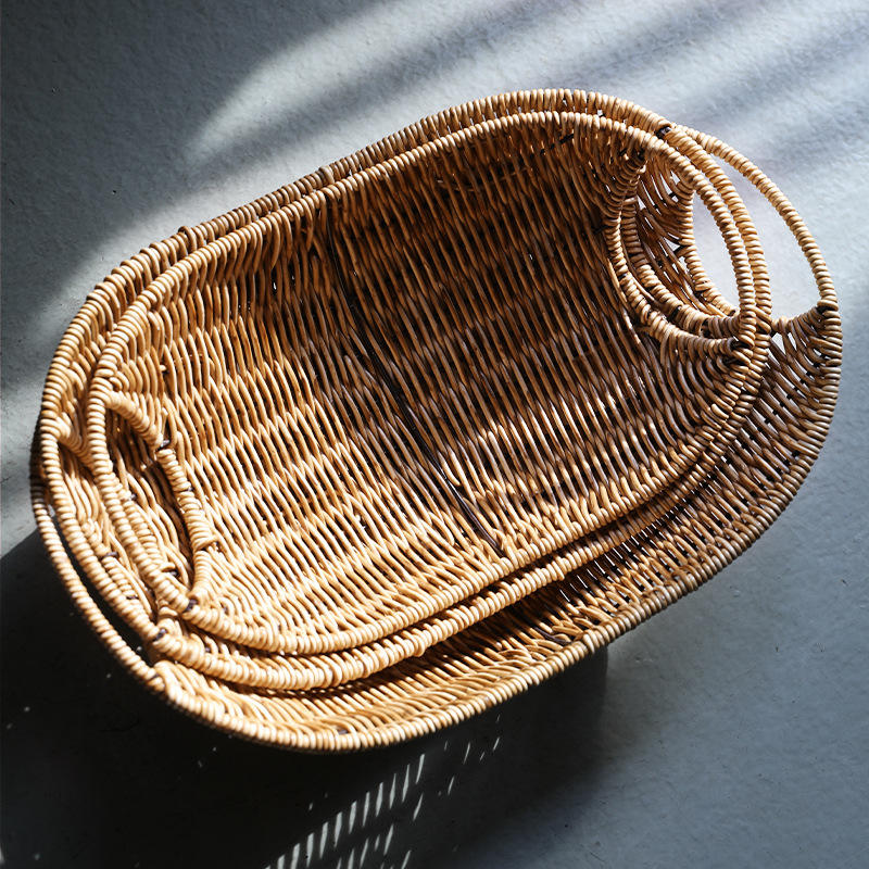 Plateau à fruits d'Asie du Sud-Est en plastique imitation rotin tressé, durable, style simple, taille standard pour salle à manger et salon