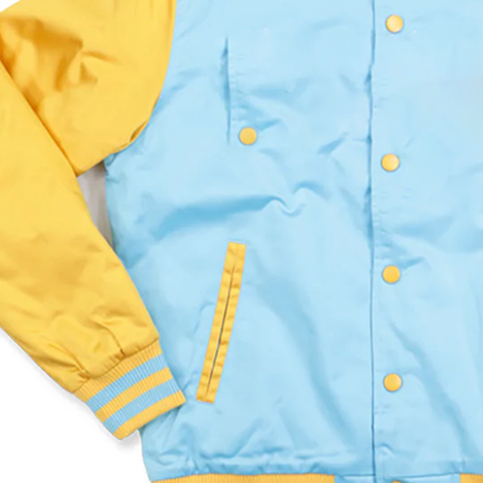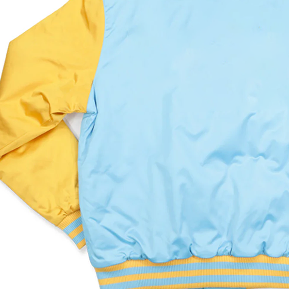 Blouson universitaire classique unisexe en satin bicolore Southern University pour les fans, avec lettrage sur le devant, bleu et blanc