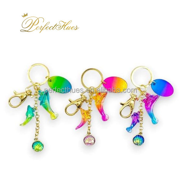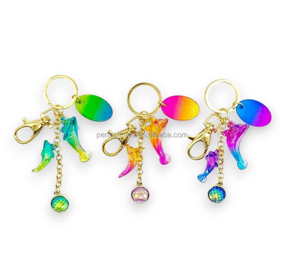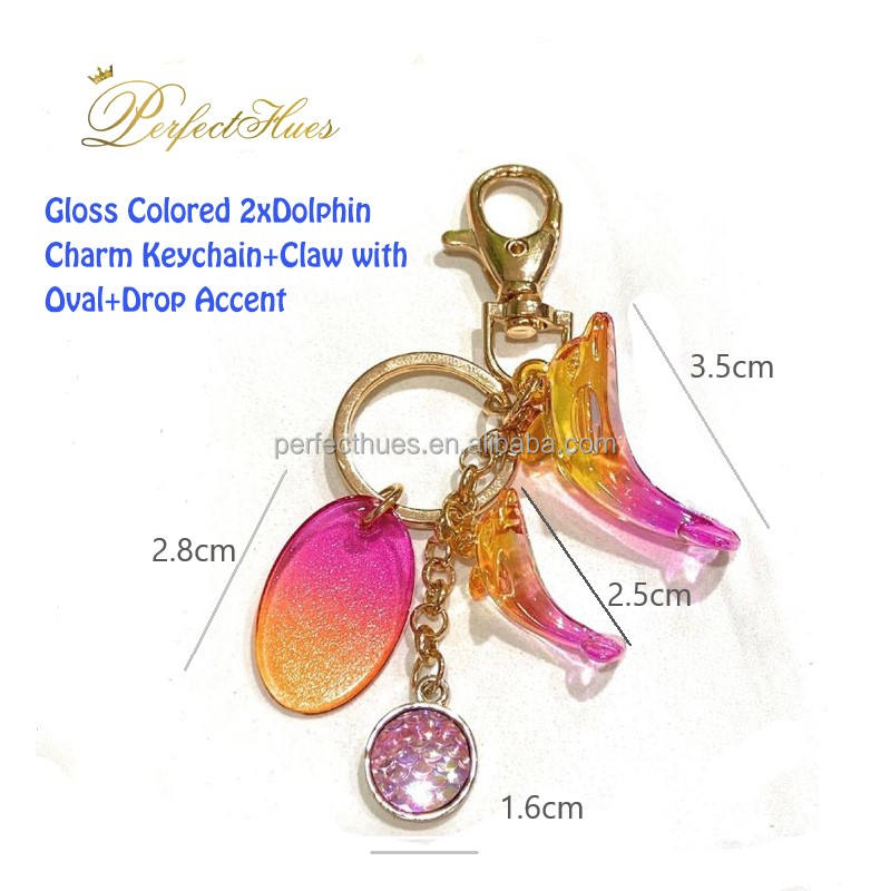 Description:colored 2xDolphin keychain with Oval charm + Drop accent