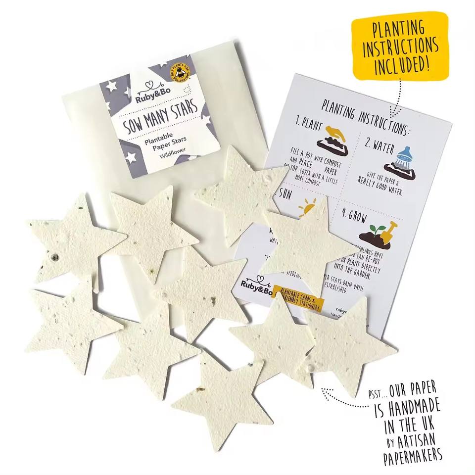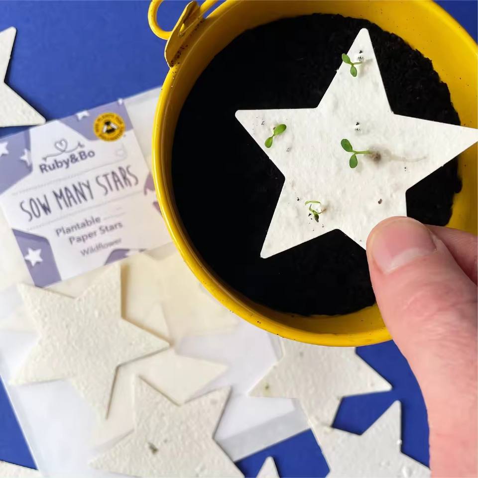 Semez de nombreuses cartes de notes en papier faites à la main Papier de fleurs sauvages étoiles de germination recyclées et écologiques