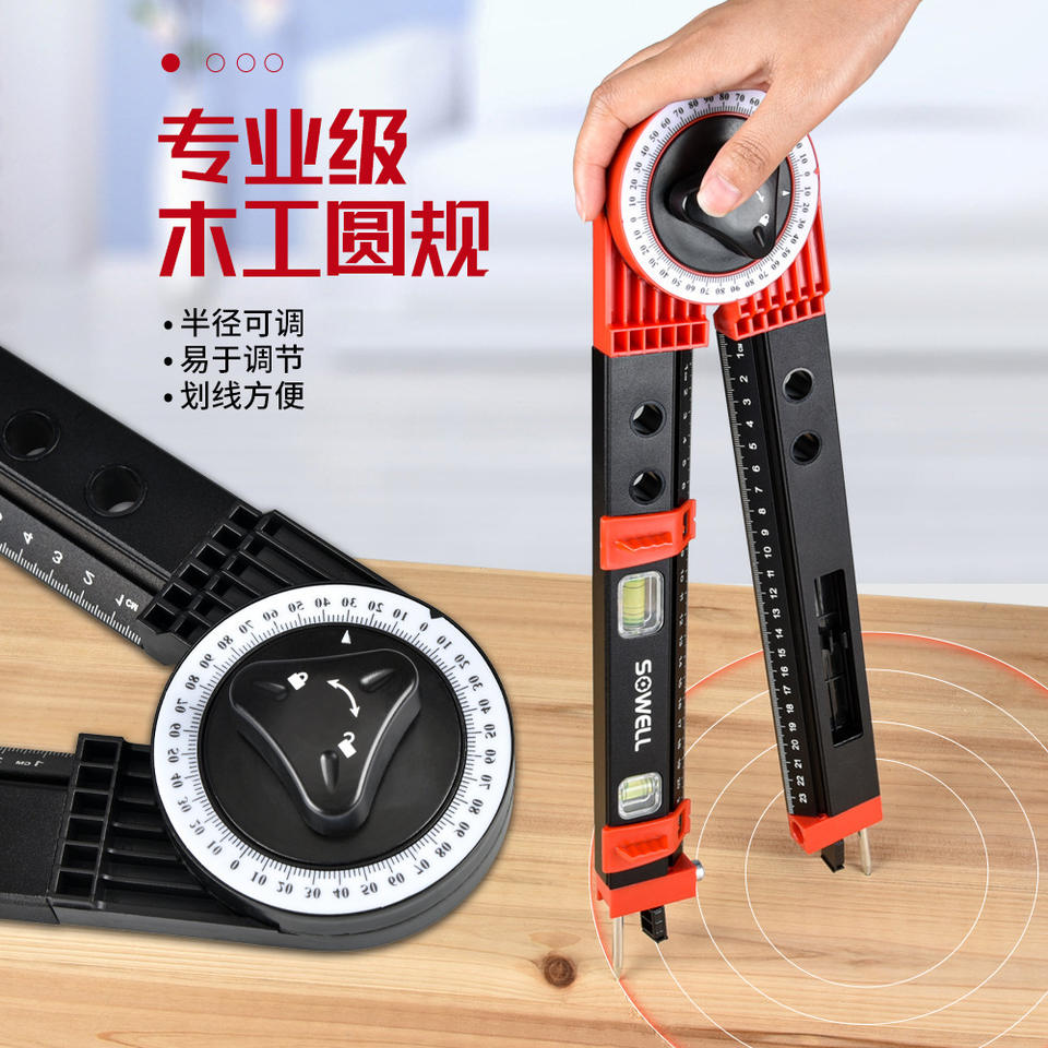 Sowell Woodworking Compass Adjustable Radius Multi Function Ruler Leveling Tool For Carpentry Marking
