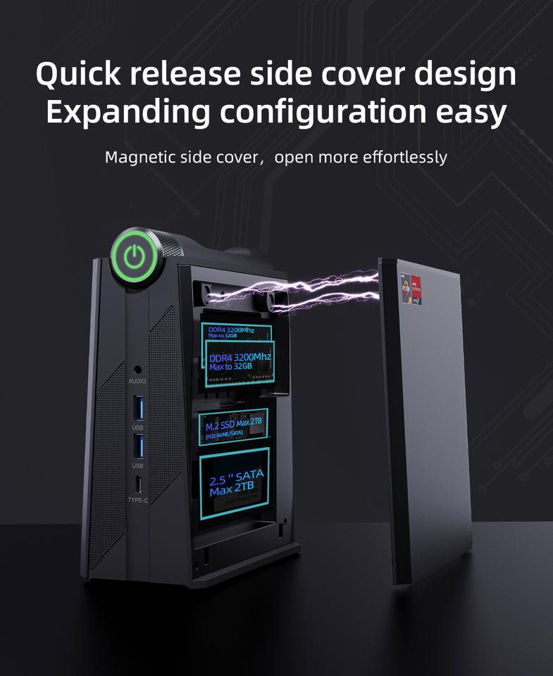 Soyeer AMD série R9 MINI PC RAM 32G 64G grande mémoire 5900HX 6900HX CPU M.2 2280 NVME SSD pour Win10/Win11 OS AM08 PRO Mini hôte