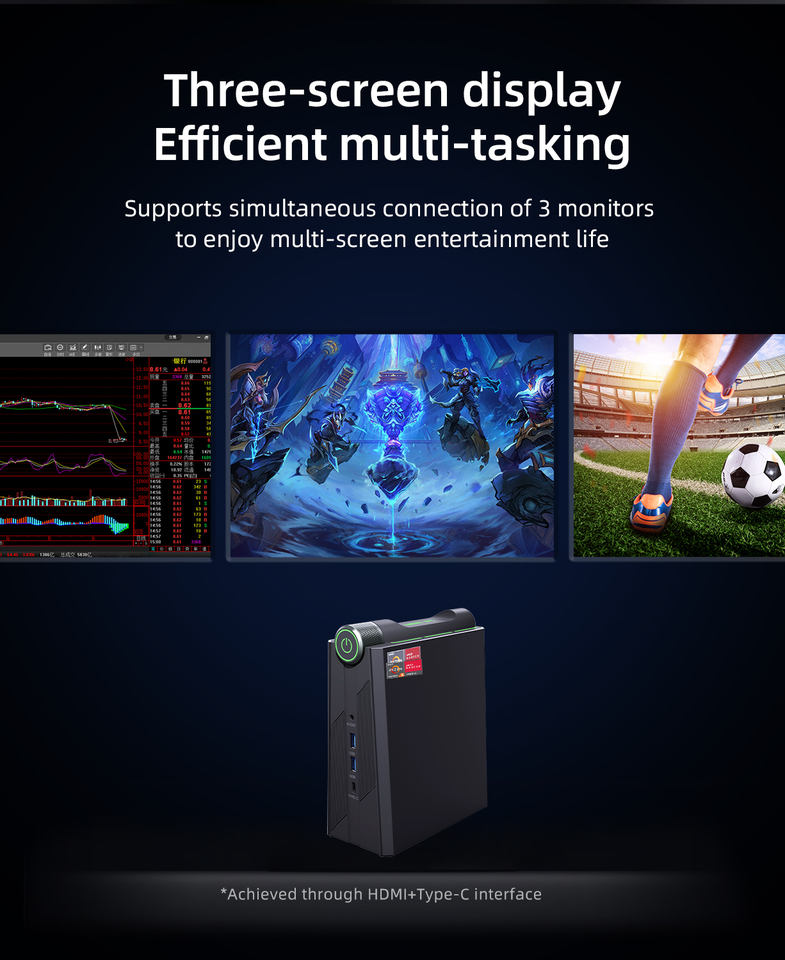Sortie vidéo:HD-MI * 2 + type C Triple Affichage