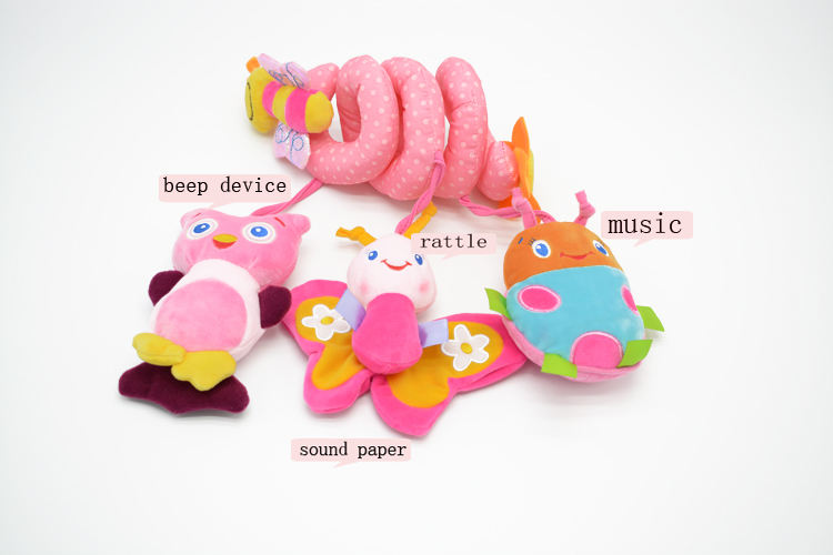 Sozzy Poussette de berceau rose à emporter Activité sensorielle Hochet suspendu en spirale Jouet avec logo personnalisé Hochets doux pour bébé